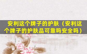 安利这个牌子的护肤(安利这个牌子的护肤品可靠吗安全吗)