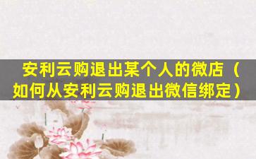 安利云购退出某个人的微店(如何从安利云购退出微信绑定)