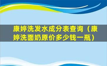 康婷洗发水成分表查询(康婷洗面奶原价多少钱一瓶)