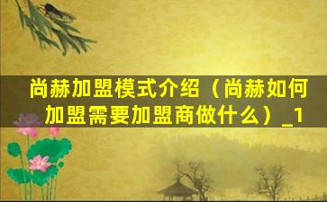 尚赫加盟模式介绍(尚赫如何加盟需要加盟商做什么)