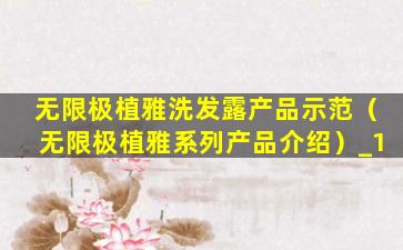 无限极植雅洗发露产品示范(无限极植雅系列产品介绍)