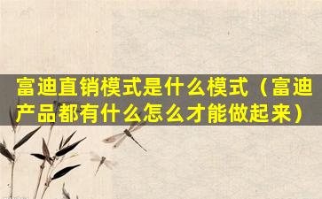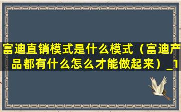 富迪直销模式是什么模式(富迪产品都有什么怎么才能做起来)