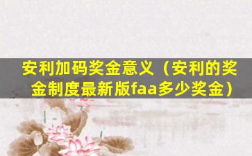 安利加码奖金意义(安利的奖金制度最新版faa多少奖金)