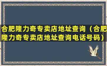 2、合肥隆力奇专卖店地址查询电话号码