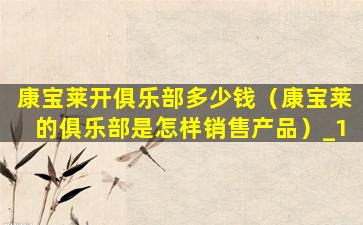 康宝莱开俱乐部多少钱(康宝莱的俱乐部是怎样销售产品)
