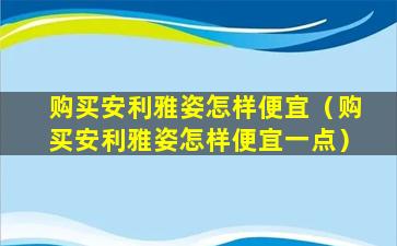 购买安利雅姿怎样便宜(购买安利雅姿怎样便宜一点)