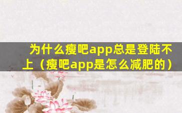 为什么瘦吧app总是登陆不上(瘦吧app是怎么减肥的)