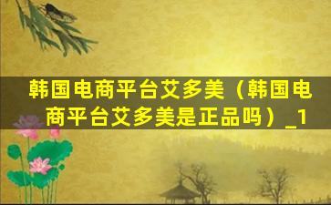 韩国电商平台艾多美(韩国电商平台艾多美是正品吗)