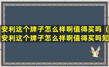 安利这个牌子怎么样啊值得买吗(安利这个牌子怎么样啊值得买吗知乎)