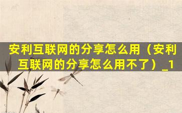 安利互联网的分享怎么用(安利互联网的分享怎么用不了)
