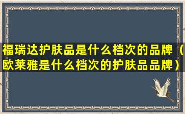 福瑞达护肤品是什么档次的品牌(欧莱雅是什么档次的护肤品品牌)