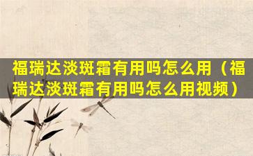 福瑞达淡斑霜有用吗怎么用(福瑞达淡斑霜有用吗怎么用视频)