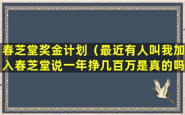 春芝堂奖金计划(最近有人叫我加入春芝堂说一年挣几百万是真的吗)
