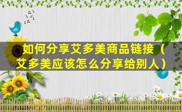 如何分享艾多美商品链接(艾多美应该怎么分享给别人)