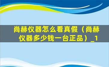 尚赫仪器怎么看真假(尚赫仪器多少钱一台正品)