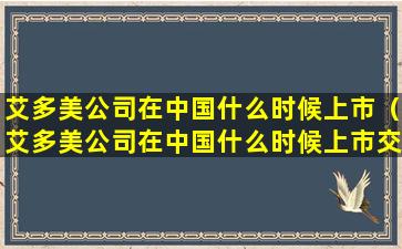 艾多美公司在中国什么时候上市(艾多美公司在中国什么时候上市交易)
