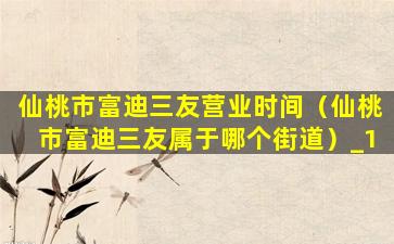仙桃市富迪三友营业时间(仙桃市富迪三友属于哪个街道)