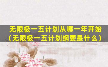 无限极一五计划从哪一年开始(无限极一五计划纲要是什么)