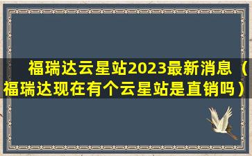 福瑞达云星站2023最新消息(福瑞达现在有个云星站是直销吗)