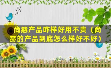 尚赫产品咋样好用不贵(尚赫的产品到底怎么样好不好)