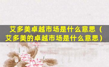 艾多美卓越市场是什么意思(艾多美的卓越市场是什么意思)