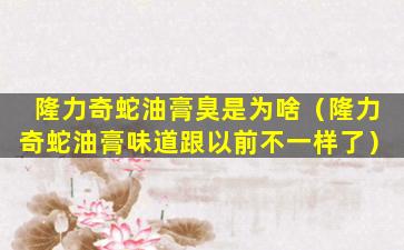隆力奇蛇油膏臭是为啥(隆力奇蛇油膏味道跟以前不一样了)