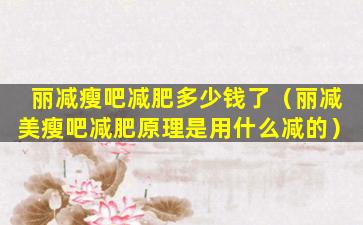 丽减瘦吧减肥多少钱了(丽减美瘦吧减肥原理是用什么减的)