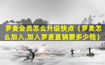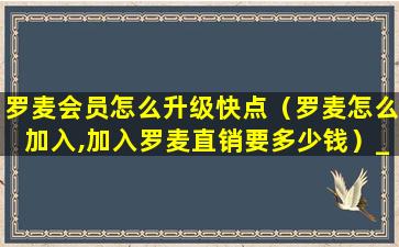 罗麦会员怎么升级快点(罗麦怎么加入,加入罗麦直销要多少钱)