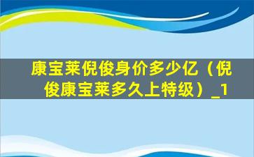 康宝莱倪俊身价多少亿(倪俊康宝莱多久上特级)