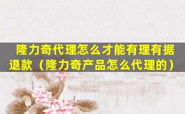 隆力奇代理怎么才能有理有据退款(隆力奇产品怎么代理的)