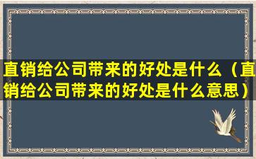 直销给公司带来的好处是什么(直销给公司带来的好处是什么意思)