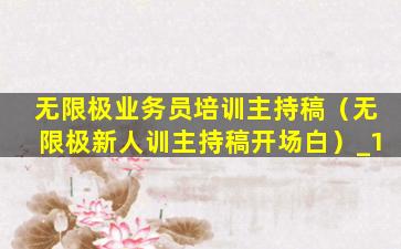 无限极业务员培训主持稿(无限极新人训主持稿开场白)