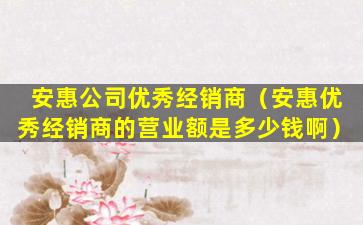 安惠公司优秀经销商(安惠优秀经销商的营业额是多少钱啊)