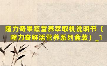 隆力奇果蔬营养萃取机说明书(隆力奇鲜活营养系列套装)