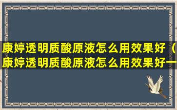 康婷透明质酸原液怎么用效果好(康婷透明质酸原液怎么用效果好一点)