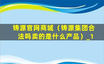 铸源官网商城(铸源集团合法吗卖的是什么产品)