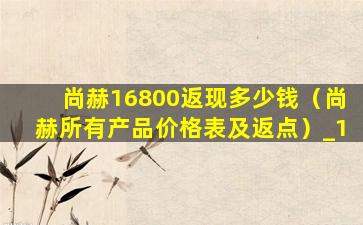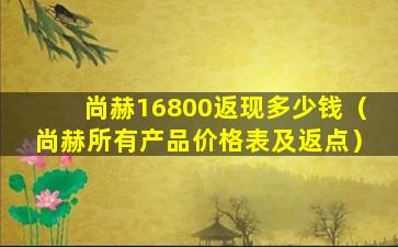 尚赫16800返现多少钱(尚赫所有产品价格表及返点)