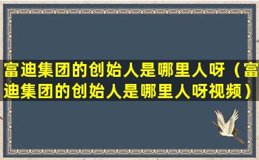 富迪集团的创始人是哪里人呀(富迪集团的创始人是哪里人呀视频)
