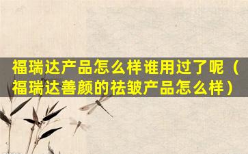 福瑞达产品怎么样谁用过了呢(福瑞达善颜的祛皱产品怎么样)