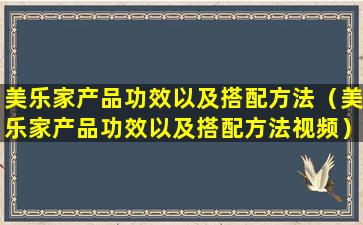 美乐家产品功效以及搭配方法(美乐家产品功效以及搭配方法视频)