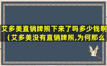 4、艾多美直销牌照下来了吗多少钱啊知乎