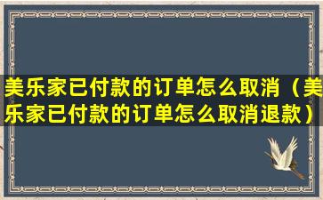 美乐家已付款的订单怎么取消(美乐家已付款的订单怎么取消退款)