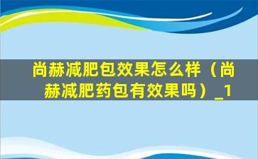 尚赫减肥包效果怎么样(尚赫减肥药包有效果吗)