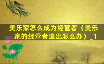 美乐家怎么成为经营者(美乐家的经营者退出怎么办)