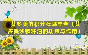 艾多美的积分在哪里查(艾多美沙棘籽油的功效与作用)