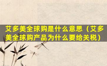艾多美全球购是什么意思(艾多美全球购产品为什么要给关税)