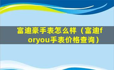 富迪豪手表怎么样(富迪foryou手表价格查询)