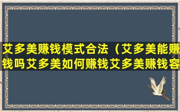 艾多美赚钱模式合法(艾多美能赚钱吗艾多美如何赚钱艾多美赚钱容易吗)
