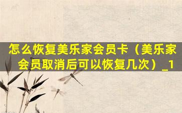怎么恢复美乐家会员卡(美乐家会员取消后可以恢复几次)