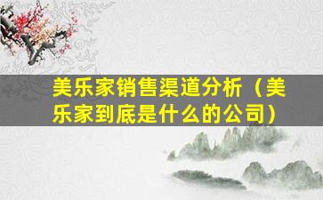 美乐家销售渠道分析(美乐家到底是什么的公司)